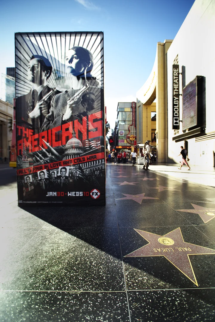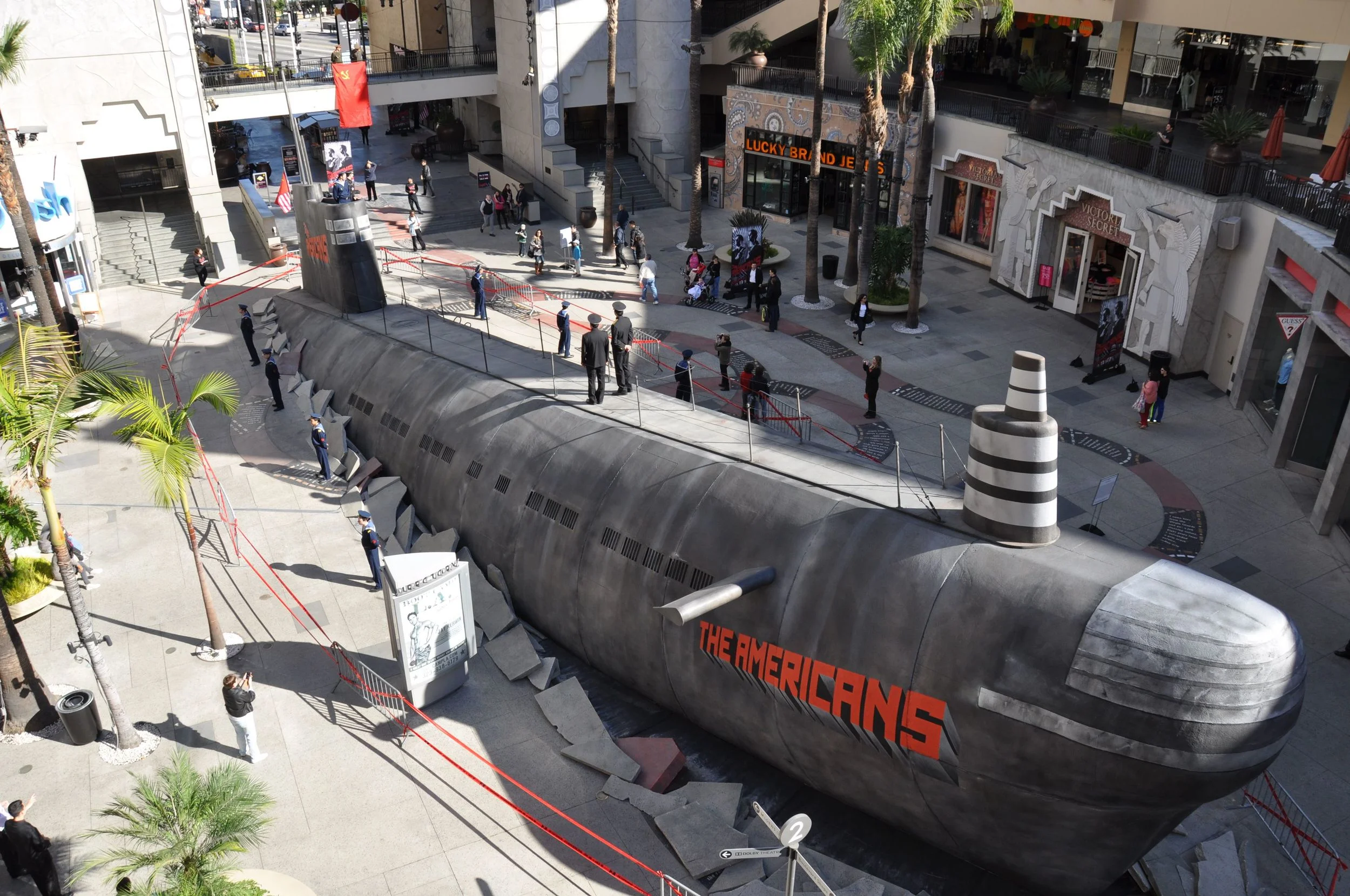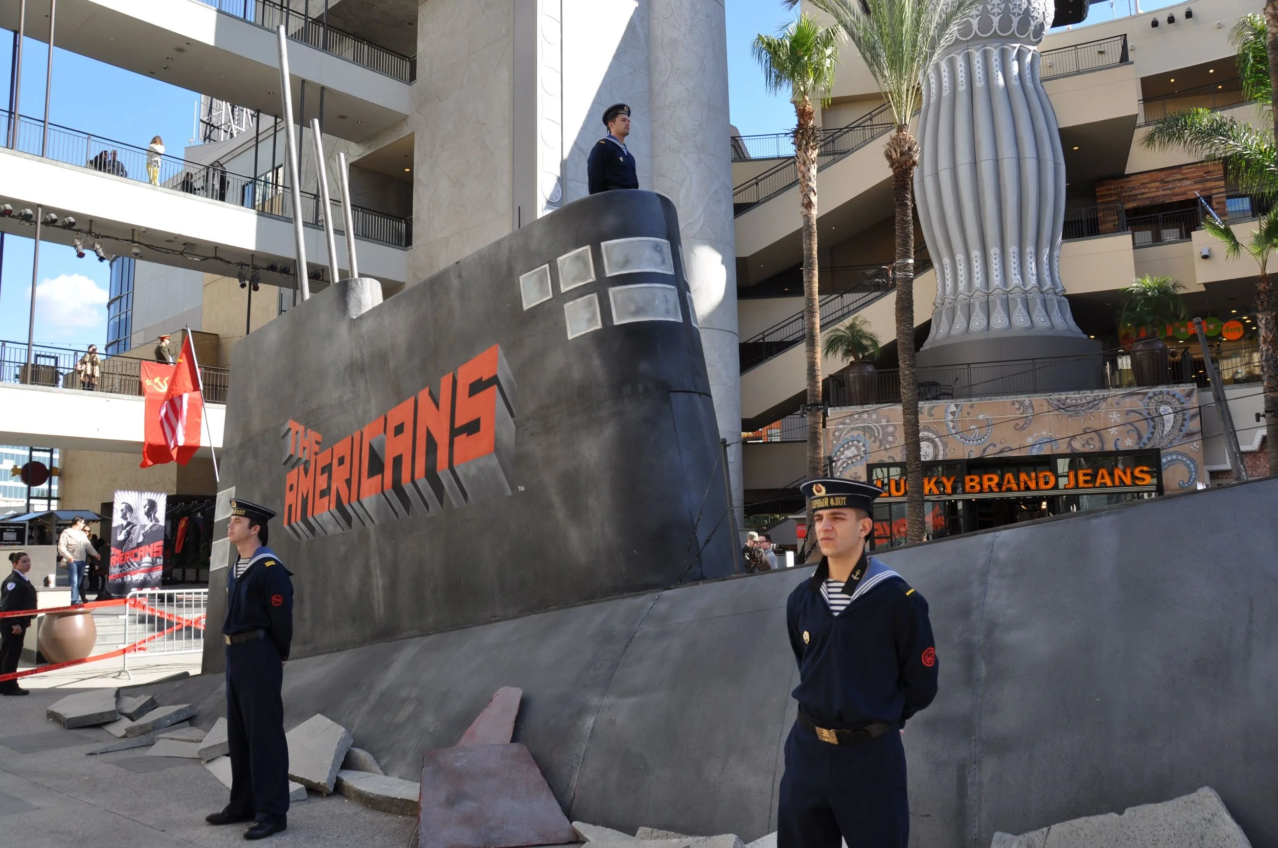 Siteline Productions was retained by award-winning PR & marketing firm LeadDog Marketing to design & fabricate a 112’ long x 20’ wide x 22’ tall Russian Foxtrot-class submarine for the premiere of the new FX series THE AMERICANS. The life-size submarine appeared to ‘surface’ in the middle of the Hollywood and Highland Center in Hollywood, California.